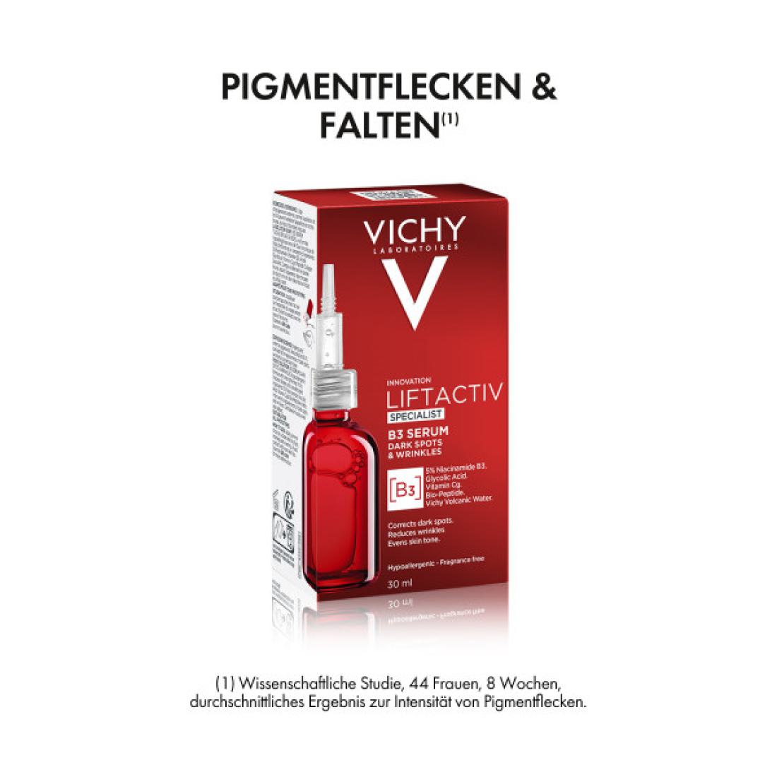 - Das Vichy LIFTACTIV SPECIALIST B3 Serum mildert Pigmentflecken sichtbar und lässt die Haut ebenmäßiger und strahlender erscheinen