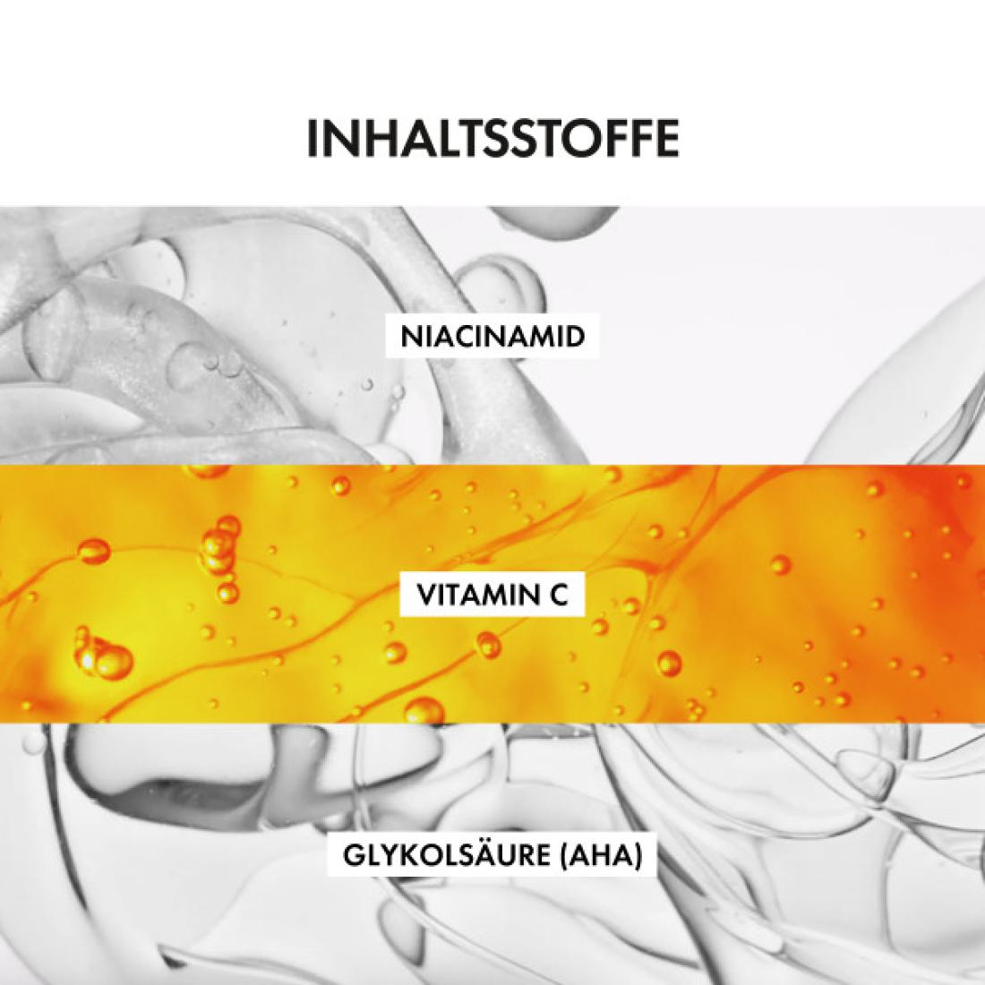 - Glykolsäure und Peeling Wirkstoffe mildern Pigmentflecken, glätten die Haut und verleihen dem Teint mehr Ebenmäßigkeit und Strahlkraft