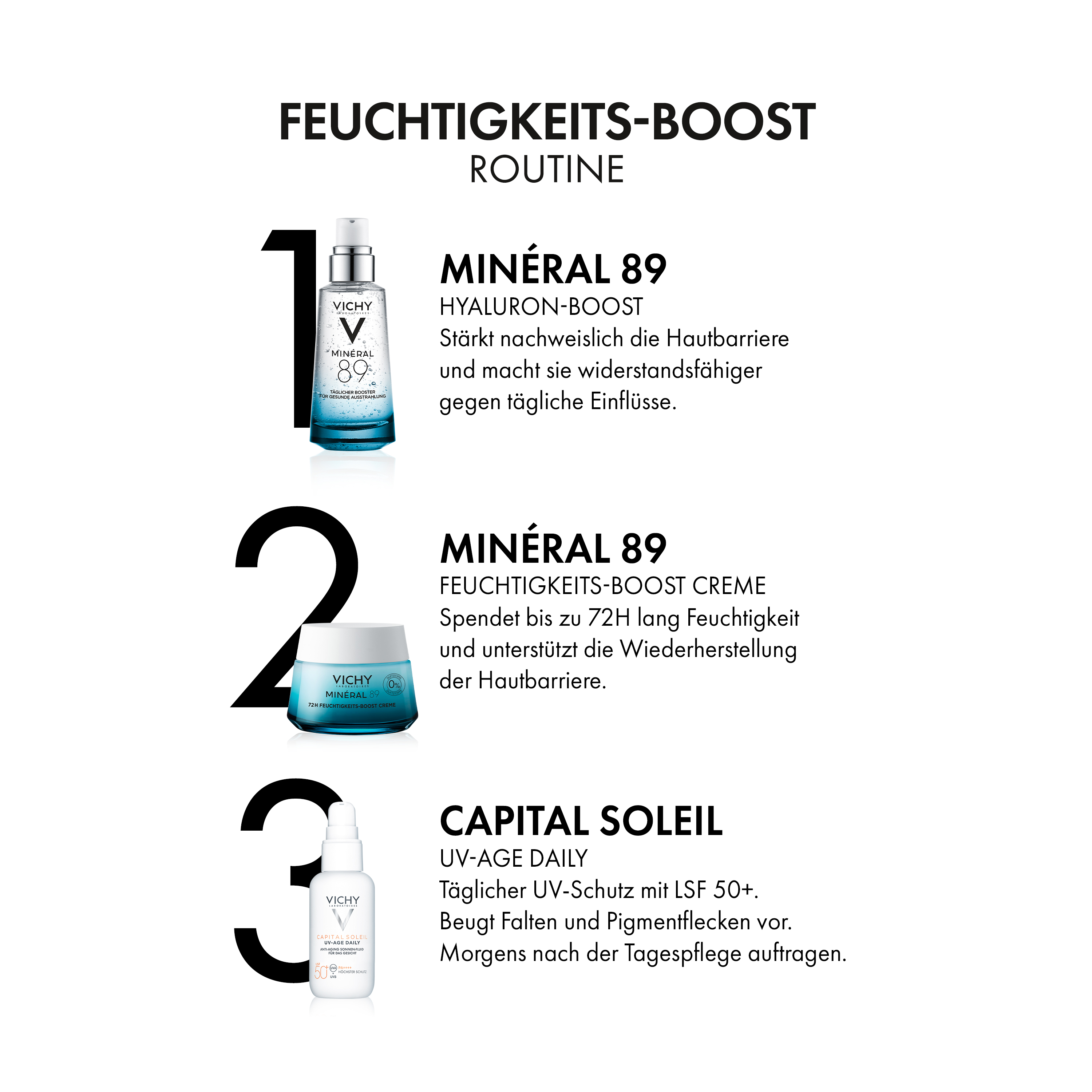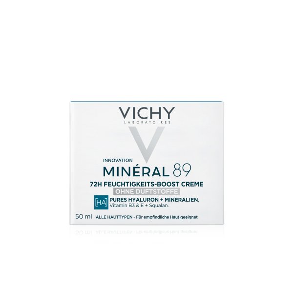 - Die sanfte Formel der Feuchtigkeitscreme MINÉRAL 89 Creme von Vichy besteht aus 92 % natürlichen Inhaltsstoffen.