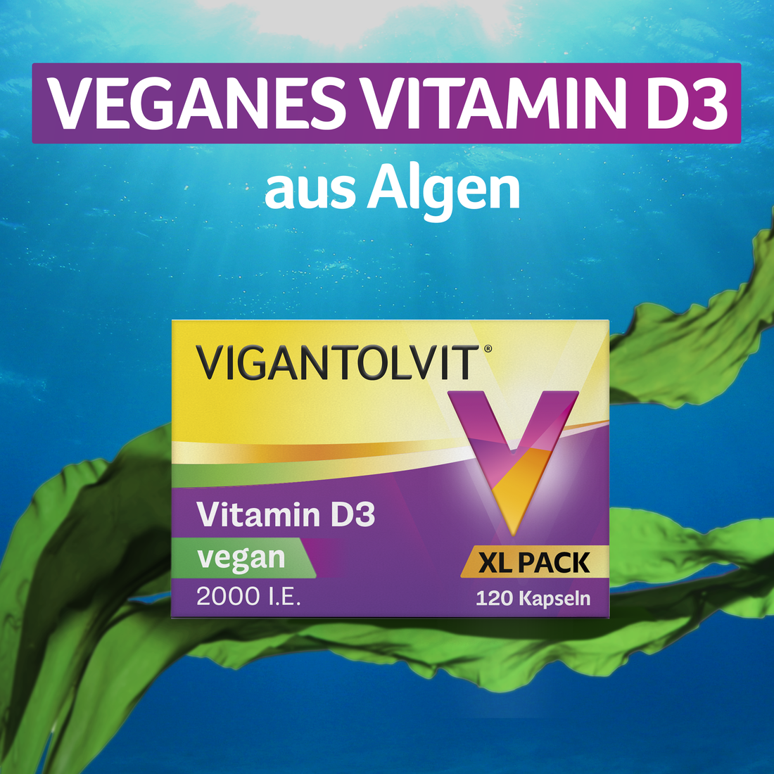 Wenn Sie vegan leben, werden Sie festgestellt haben, dass viele Vitamin D Präparate nicht vegan sind. Deshalb haben wir VIGANTOLVIT® Vegan entwickelt - jede Kapsel enthält eine hohe Dosis Vitamin D3, das wir aus Algen gewinnen, so dass Sie sicher etwas vollständig pflanzliches einnehmen. Wir sind seit mehr als 90 Jahren Experten für Vitamin D und wissen, wie wir die bewährte Qualität liefern können. Unsere veganen Vitamin D Kapseln sind glutenfrei, laktosefrei und ohne Gentechnik. Sie enthalten auch keine Farb-, Aroma- oder Konservierungsstoffe. Außerdem sind sie in einer XLPackung mit 120 Kapseln erhältlich – genug für 3 Monate.