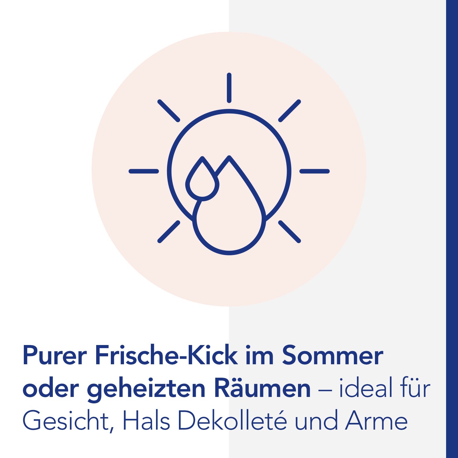Einfach aus etwa 20 cm Entfernung auf Gesicht und/ oder Körper aufsprühen - fertig. In Sekundenschnelle ist der feine Sprühnebel eingezogen.