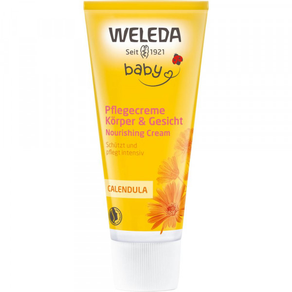 Weleda Calendula Pflegecreme Körper & Gesicht Naturkosmetik Gesichts- und Körperpflege zur Pflege und Beruhigung trockener Haut, Feuchtigkeitscreme für Babys & Kinder • Schützt und pflegt intensiv • Schützt und beruhigt die Haut • Pflegt trockene Hautstellen • Auch im Windelbereich anwendbar Beschreibung Die Weleda Calendula Pflegecreme Körper & Gesicht ist ideal für die tägliche Körperpflege von Babys und Kindern. Die reichhaltige Pflegecreme mit sorgfältig ausgewählten Natursubstanzen schützt zarte Haut und hält sie samtig weich. Ein wertvoller Auszug aus Bio-Calendula beruhigt die Haut; hautverwandtes Wollwachs bildet einen zuverlässigen Schutz vor dem Austrocknen. Die mild duftende Creme eignet sich auch sehr gut für die Pflege trockener Hautstellen. Auch im Windelbereich anwendbar, wenn keine nässebedingte Entzündungsneigung besteht.