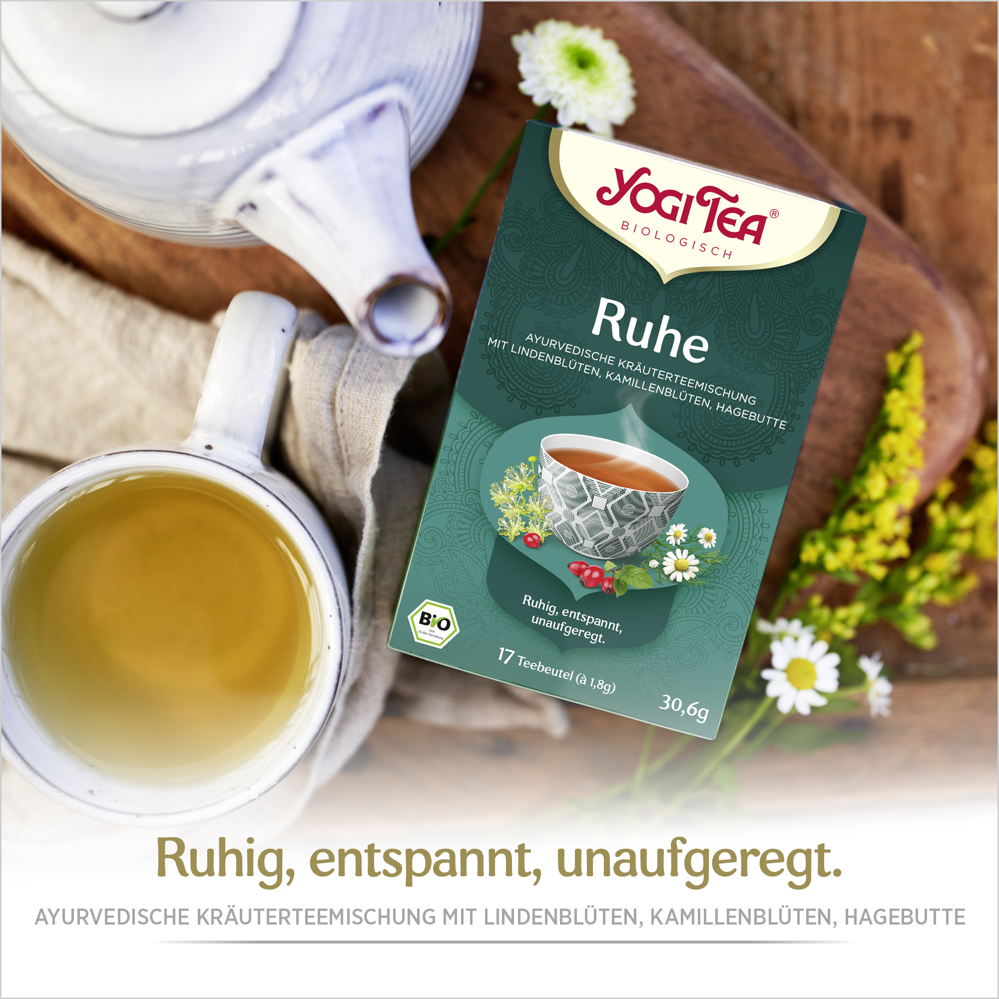 Ayurveda - die ganzheitliche Lehre vom Leben - interessiert sich vor allem für die praktisch-alltägliche Lebensführung der Menschen. Ihr geht es darum, den Menschen in seinem natürlichen Gleichgewicht zu halten. Balance ist das Ideal eines gesunden, glücklichen und spirituellen Lebens. \"Walk in balance on Mother Earth!\" Wir erleben in unserem täglichen Leben, wie Stress und Spannungen uns aus dem Gleichgewicht bringen. Ist es nicht Zeit, inne zu halten? Ein Verlangen nach einer neuen Langsamkeit entsteht. Ein Ruf zum Umdenken: Nur in Ruhe und im Innehalten erinnern wir unserer inneren Werte. YOGI TEA® Ruhe Tee ist eine sanfte, milde Mischung aus Kräutern und Gewürzen. Sie ist so herrlich ausgewogen, dass einige Tässchen reichen, um wieder zu mehr Gelassenheit zu finden.