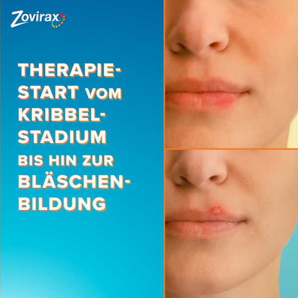 • Zovirax Lippenherpescreme wirkt ab dem ersten Kribbeln und in der Bläschenphase.